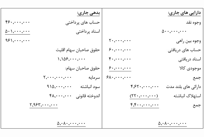 حقوق صاحبان سهام اقلیت 40 درصد است. طبق اعداد جدول داریم:
