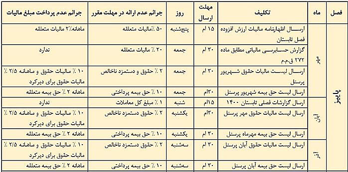 جرائم عدم پرداخت مالیات بر اساس تقویم حسابداری پاییز