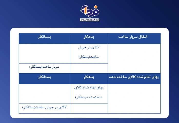در زمان انتقال سربار ساخت حساب کالای در جریان ساخت بدهکار می‌شود