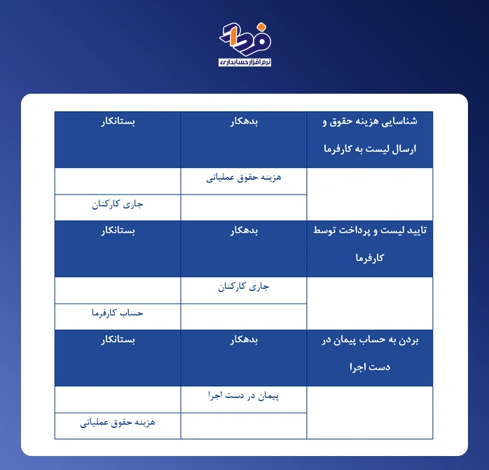 ثبت حسابداری پیمانکاری حقوق و دستمزد زمانی که کارفرما واریز می‌کند