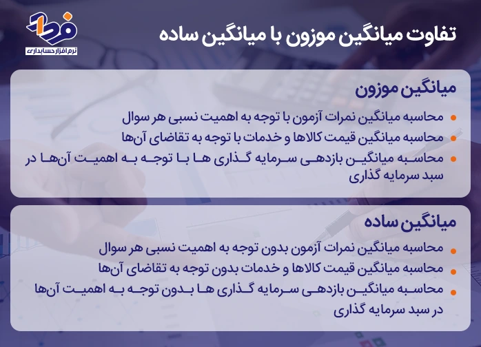 محاسبه میانگین موزون به دو روش انجام میشود که در ادامه آنها را توضیح خواهیم داد.