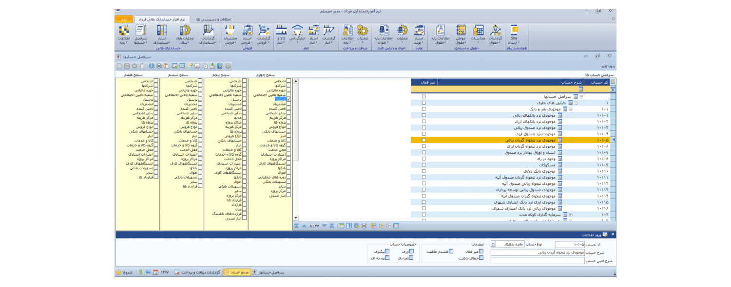 گروه بندی حسابهای تفصیلی در نرم افزار حسابداری آموزشگاه فرداد در چند سطح تعریف می شود؟
